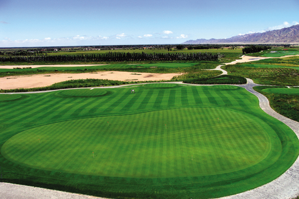 球场是一幅由绿草、树木、湖水、小溪、沙地和蓝天白云、清风及三五成群的球员等构成的画面。国际标准的18洞72杆锦标赛级旅游观光球场,占地面积1489亩。球道全长7128码,充分利用自然景观和植物,借鉴苏格兰林克斯风格,设有大面积的原始沙地和茂密的荒草及高品质的本特草。