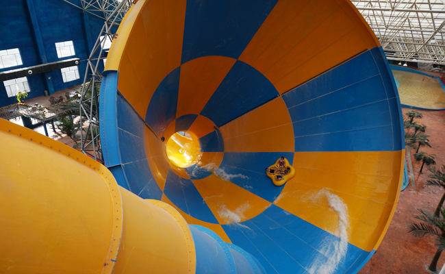 水世界占地面积为10万平米,其中室内区域建筑面积为2.5万平米,总投资8500余万元建成。水世界娱乐区的外部是大鲸鱼造型,增添了感官上的趣味性和广告效果;除四周配备了自然通风、透光窗户外,顶部选用了阳光锁扣板这种新型材料,不仅增加了建筑物的稳定和保温性,而且透光性能极强,有机的把水、阳光、植物、沙滩等北方人向往的景象浓缩溶为一体,而且四季开放,为游客提供了一个舒适、伊人、闲逸、回味无穷的环境。