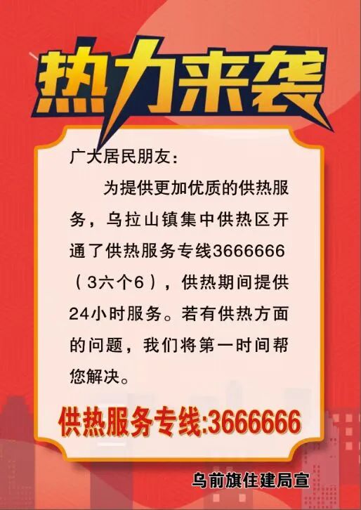关于开通乌拉山镇集中供暖服务热线的通告