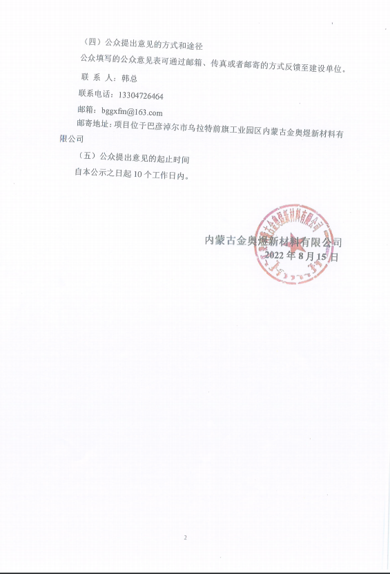 内蒙古金奥煜新材料有限公司年处理4万吨冶金固废综合利用项目环境影响评价公众参与第二次公示