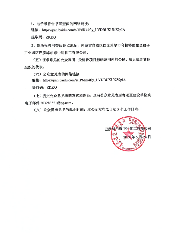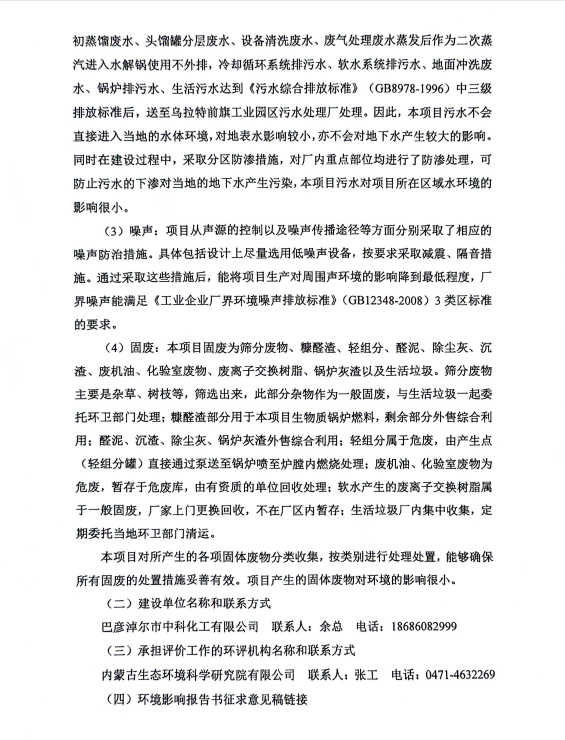 巴彦淖尔市中科化工有限公司年产20000吨糠醛生产项目环境影响评价征求意见稿公示