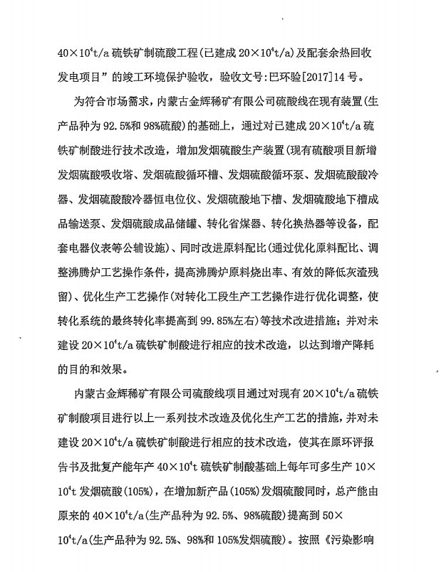 内蒙古金辉稀矿有限公司硫酸生产线提质增效技改年产10万吨发烟硫酸项目环境影响公众参与第二次公示