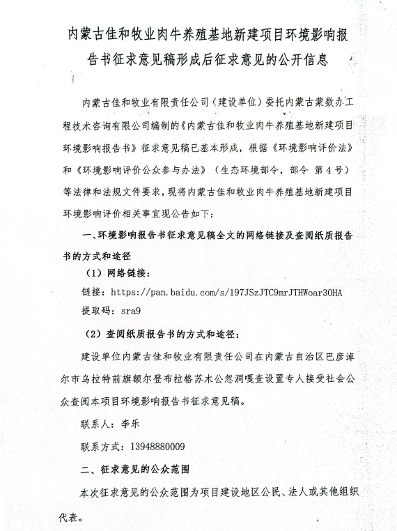 内蒙古佳和牧业肉牛养殖基地新建项目环境影响报告书第二次公示