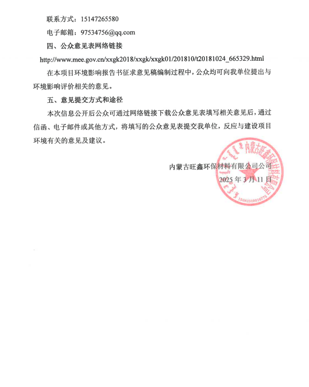 第一次公示--内蒙古旺鑫环保材料有限公司年产30万吨净水剂项目