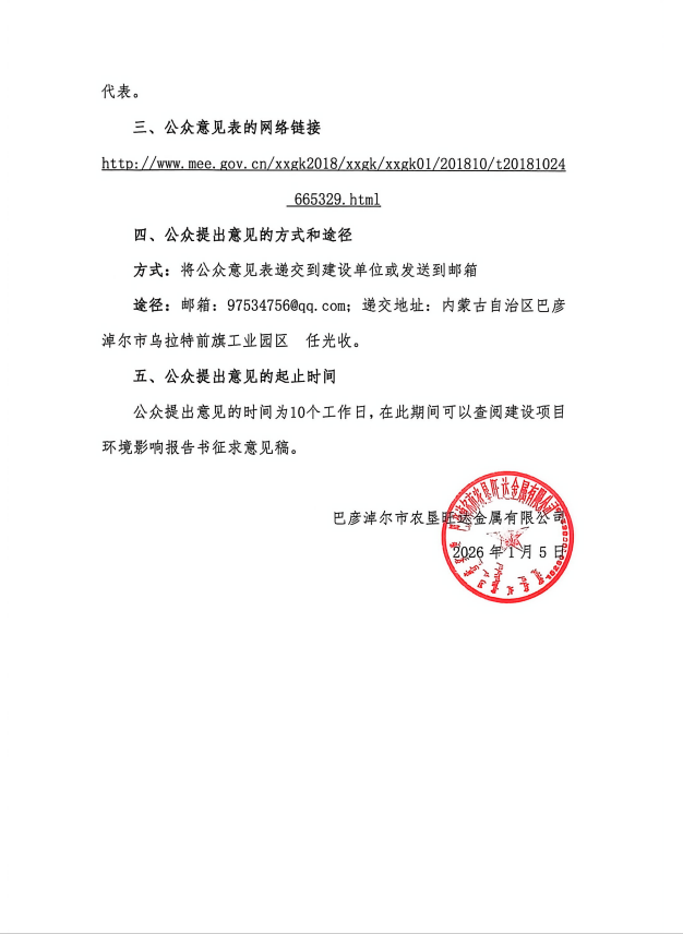 巴彦淖尔市农垦旺达金属有限公司增产1500吨稀土金属项目环境影响报告书征求意见稿形成后征求意见的公开信息
