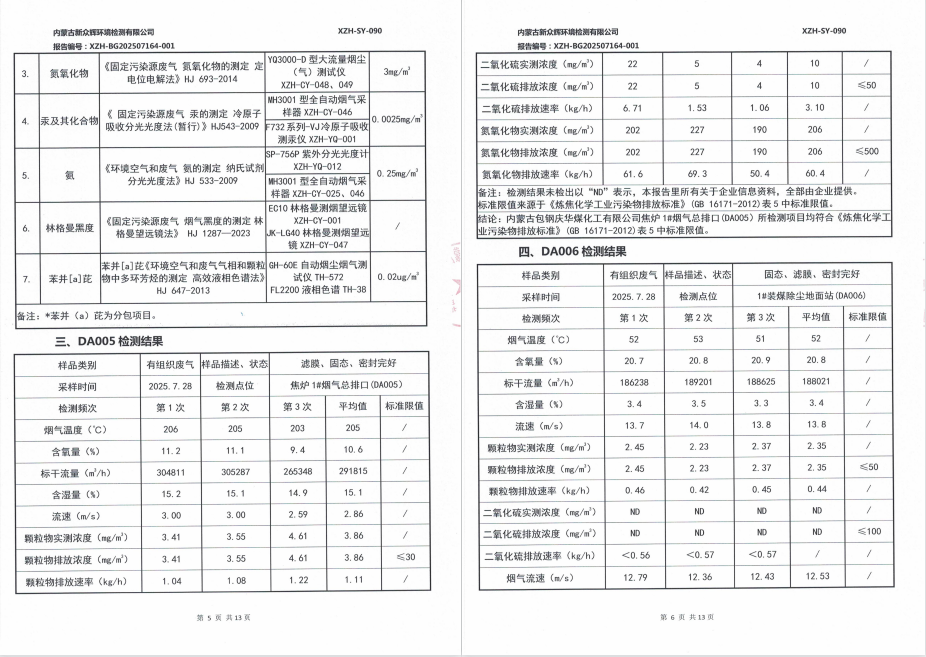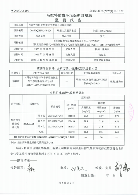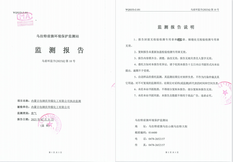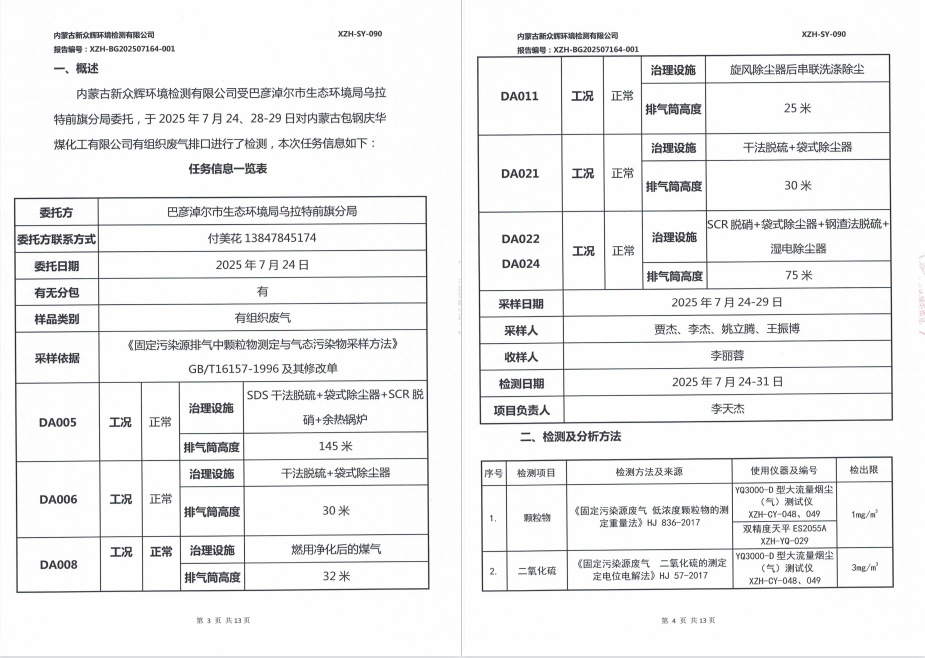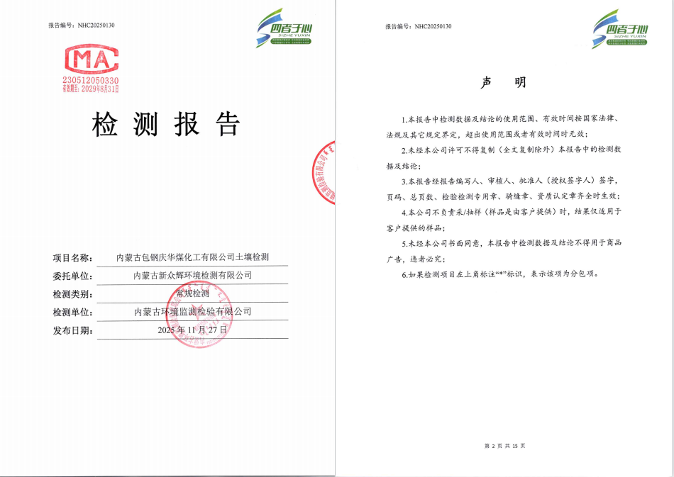 2025年内蒙古包钢庆华煤化工有限公司(土壤)(有组织)