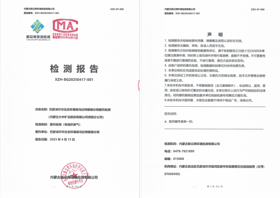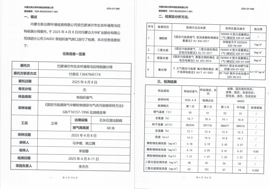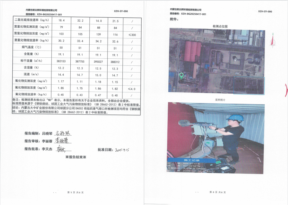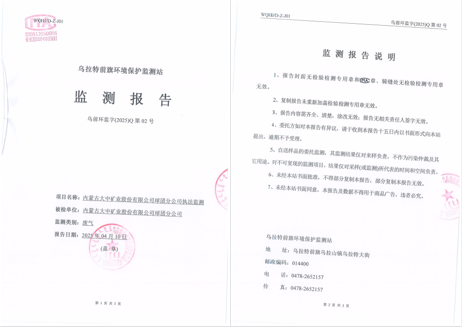 2025年内蒙古大中矿业股份有限公司球团分公司(有组织)