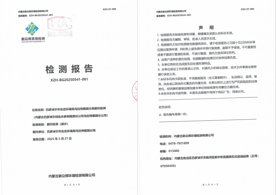 2025年内蒙古巴彦淖尔创业水务有限责任公司乌拉特前旗分公司(废水)