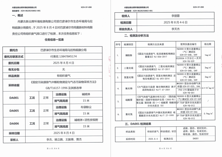 2025年巴彦淖尔市同晨新材料有限责任公司(有组织)