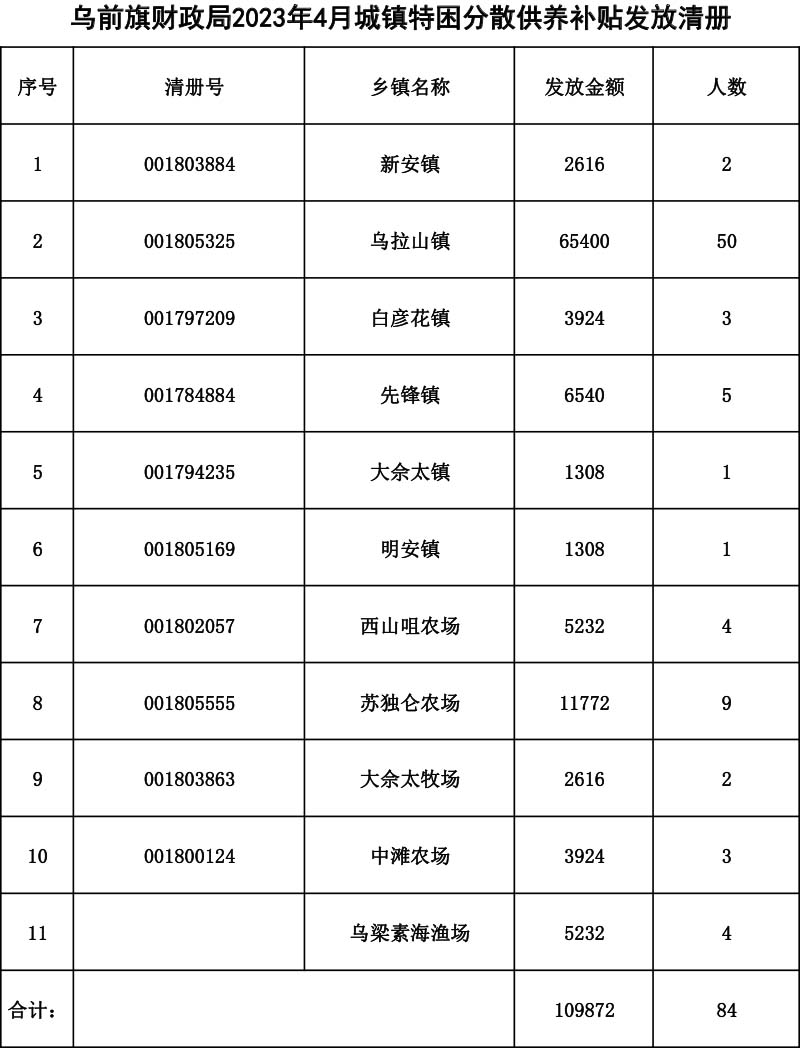 2023年4月特困发放清册