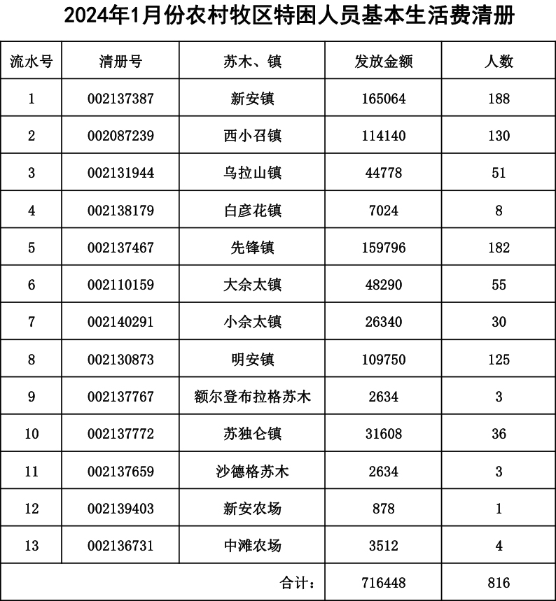 【特困】2024年1月发放明细
