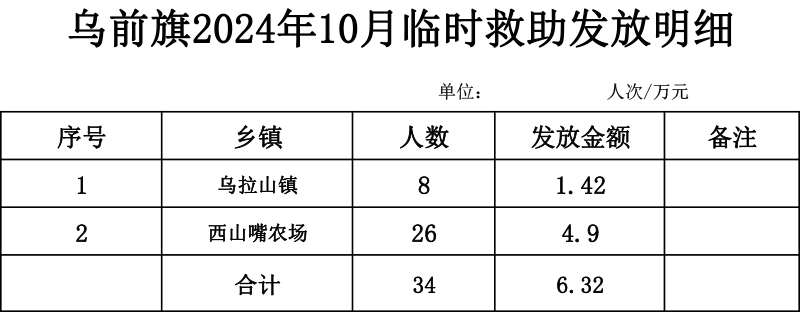 【临时救助】乌拉特前旗2024年10月发放明细