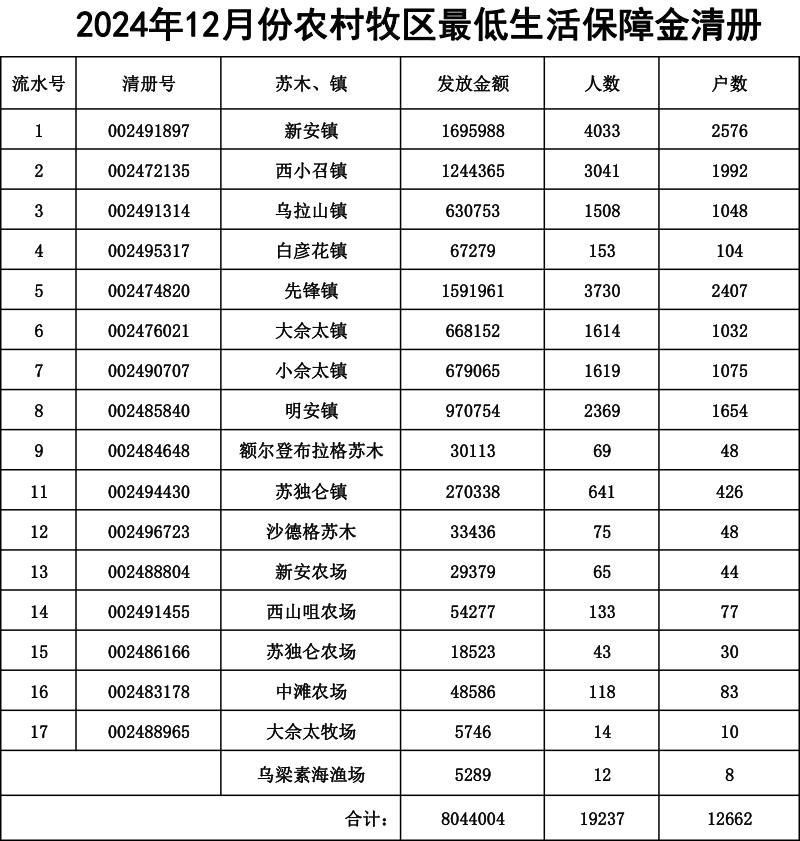 【特困】乌拉特前旗2024年12月发放明细