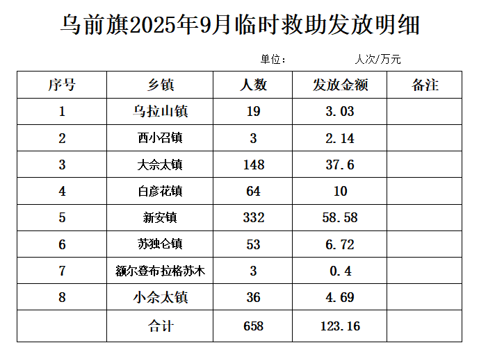 【临时救助】乌前旗2025年9月临时救助发放明细