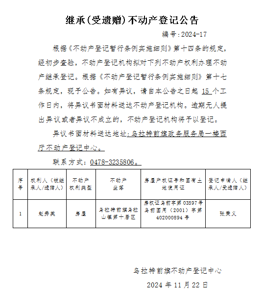 来源:乌拉特前旗不动产登记中心