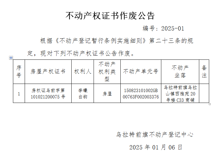 来源:乌拉特前旗不动产登记中心