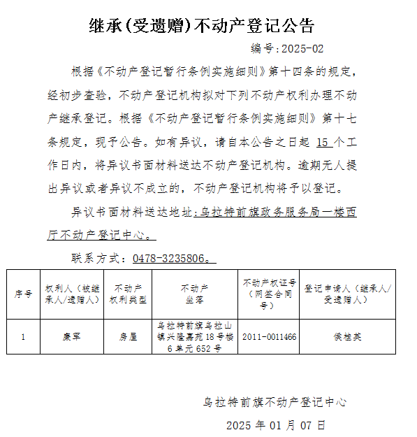 来源:乌拉特前旗不动产登记中心