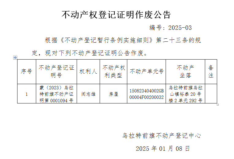 来源:乌拉特前旗不动产登记中心