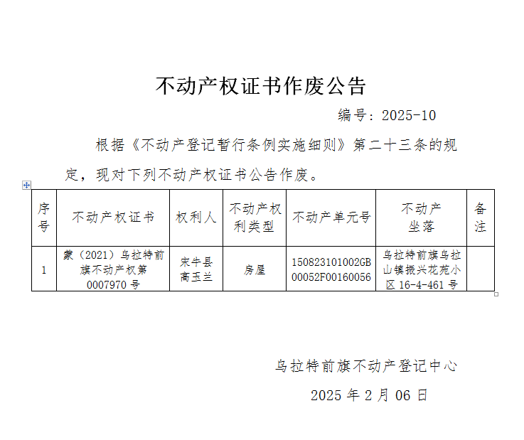 来源:乌拉特前旗不动产登记中心