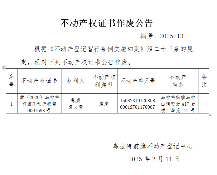 来源:乌拉特前旗不动产登记中心