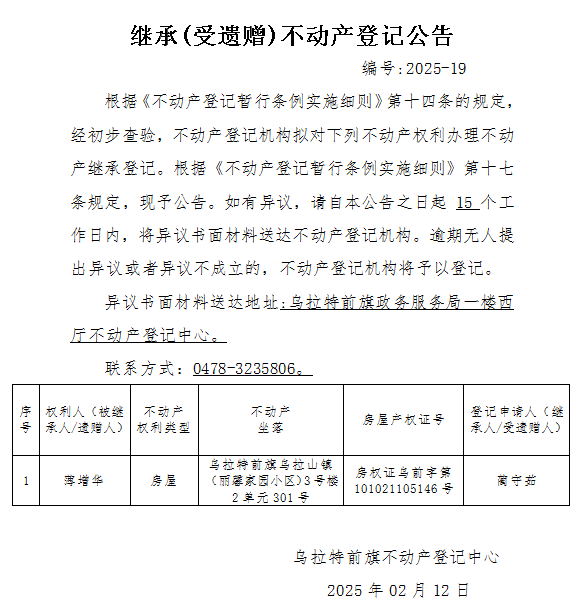 来源:乌拉特前旗不动产登记中心