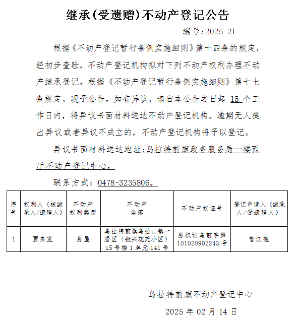 来源:乌拉特前旗不动产登记中心