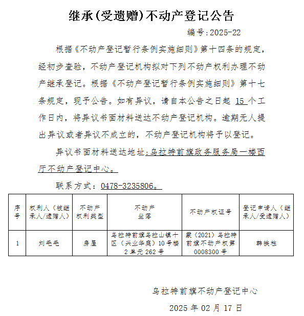 来源:乌拉特前旗不动产登记中心