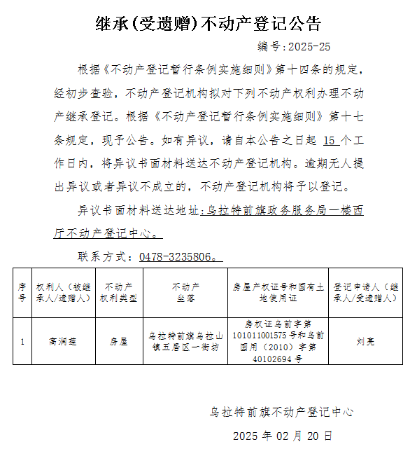 来源:乌拉特前旗不动产登记中心