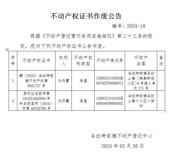 来源:乌拉特前旗不动产登记中心