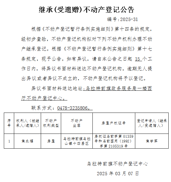 来源:乌拉特前旗不动产登记中心