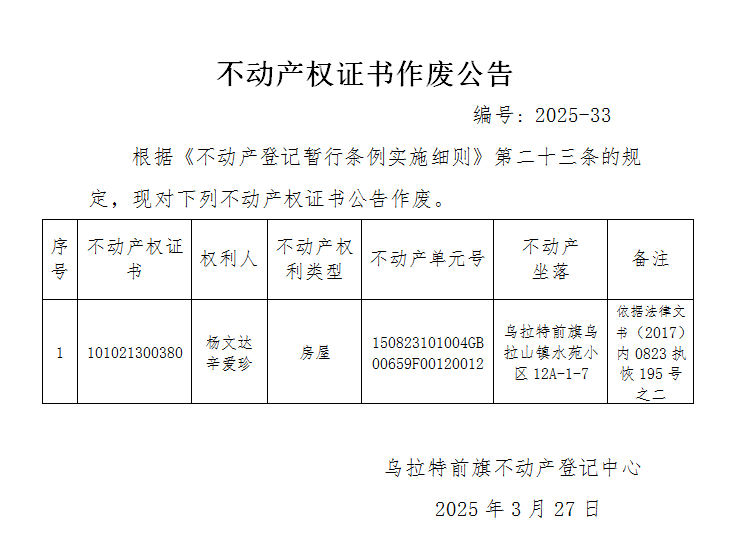 来源:乌拉特前旗不动产登记中心
