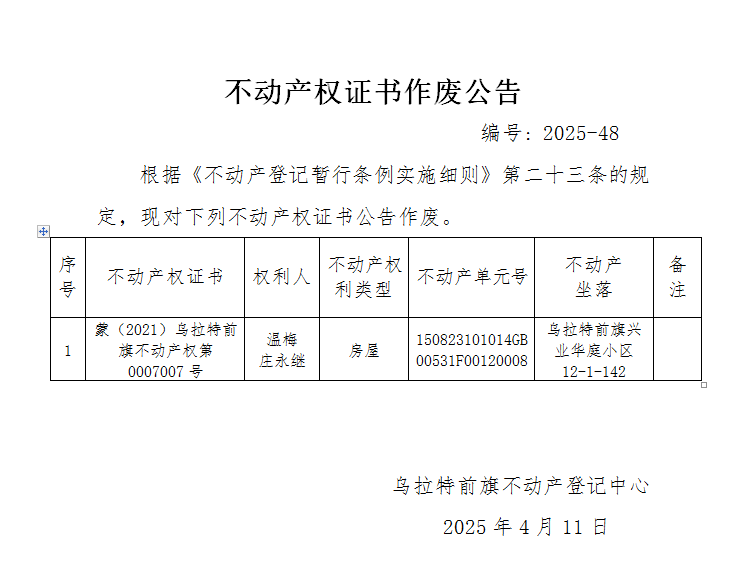 来源:乌拉特前旗不动产登记中心