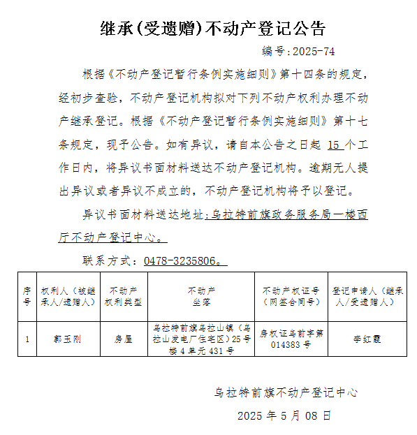 来源:乌拉特前旗不动产登记中心