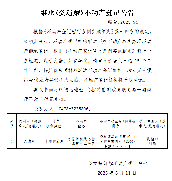 来源:乌拉特前旗不动产登记中心