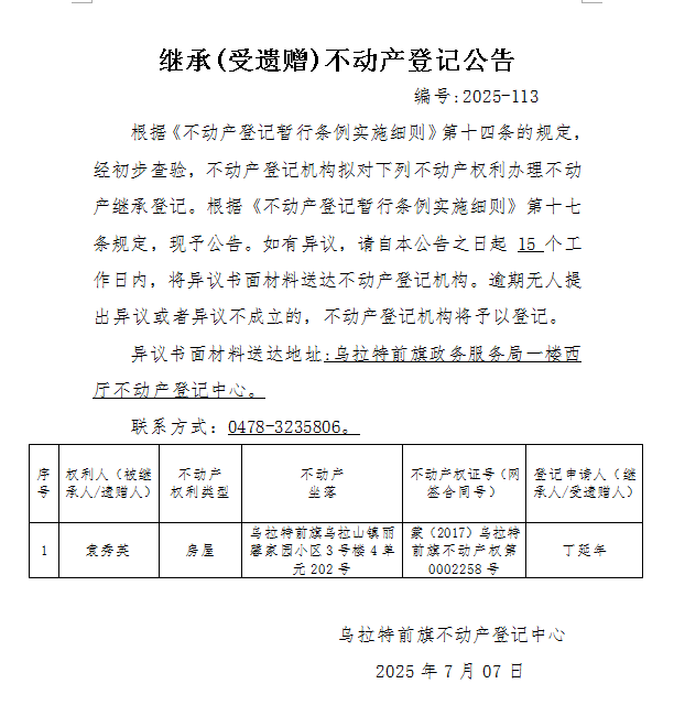 来源:乌拉特前旗不动产登记中心