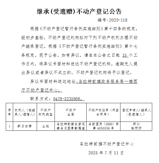 来源:乌拉特前旗不动产登记中心