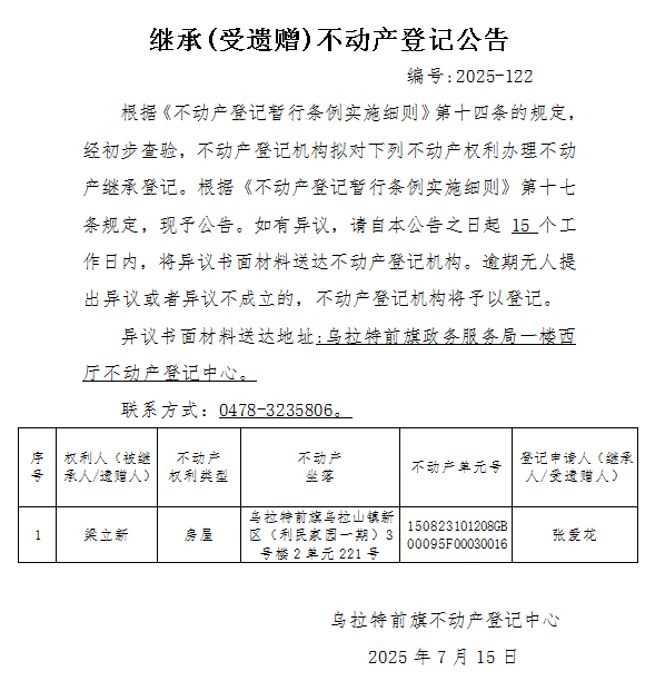 胡建忠 刘春娥继承(受遗赠)不动产登记公告