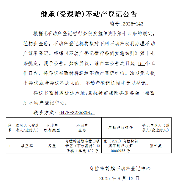 来源:乌拉特前旗不动产登记中心