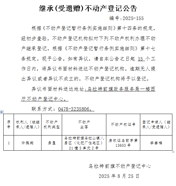 来源:乌拉特前旗不动产登记中心