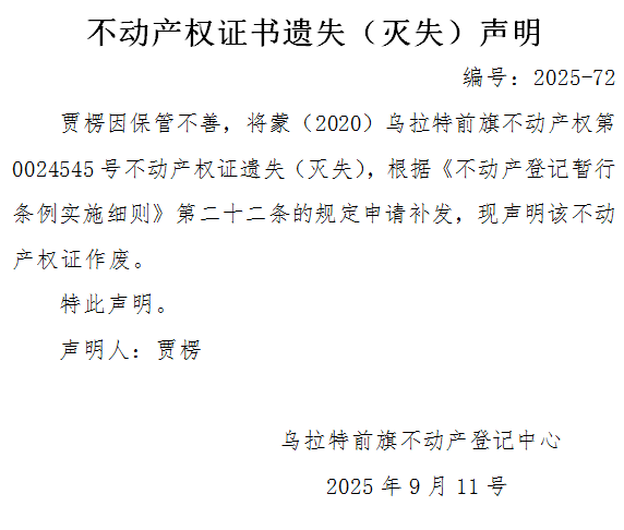 张德强 刘姚姚(刘娥娥)不动产权证书遗失(灭失)声明