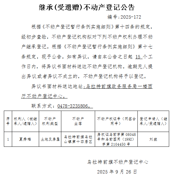 张淑芬 王浩然继承(受遗赠)不动产登记公告