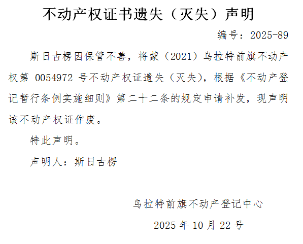 张广荣、李白女不动产权证书遗失(灭失)声明