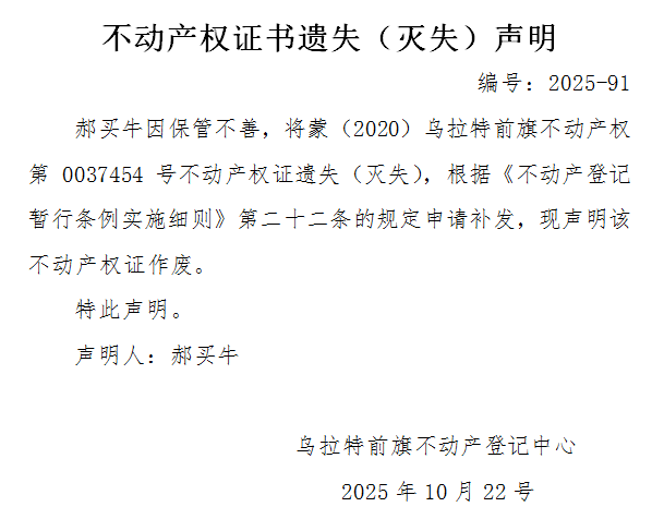 张广荣、李白女不动产权证书遗失(灭失)声明