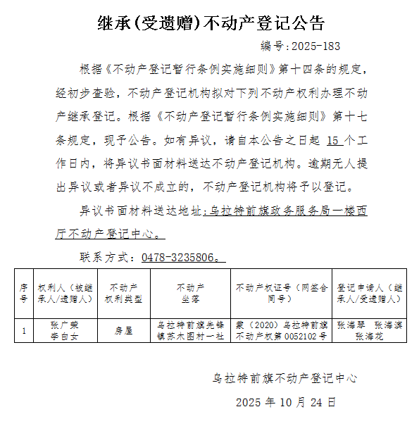 来源:乌拉特前旗不动产登记中心