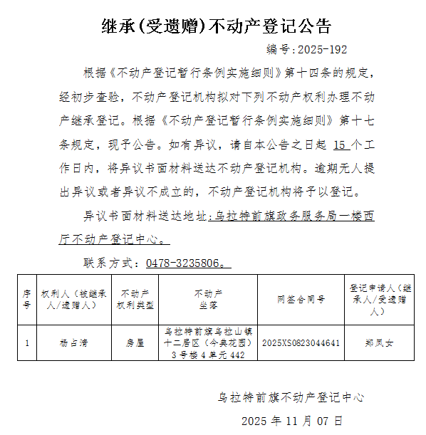 来源:乌拉特前旗不动产登记中心