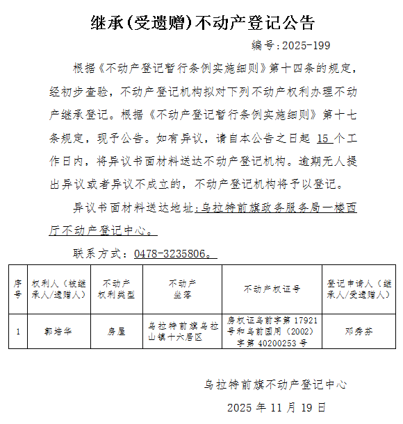 来源:乌拉特前旗不动产登记中心