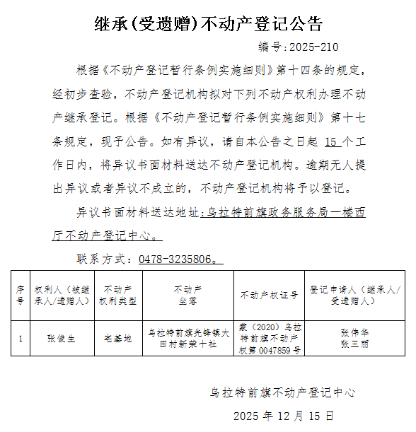 来源:乌拉特前旗不动产登记中心