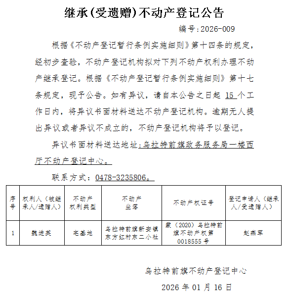 来源:乌拉特前旗不动产登记中心
