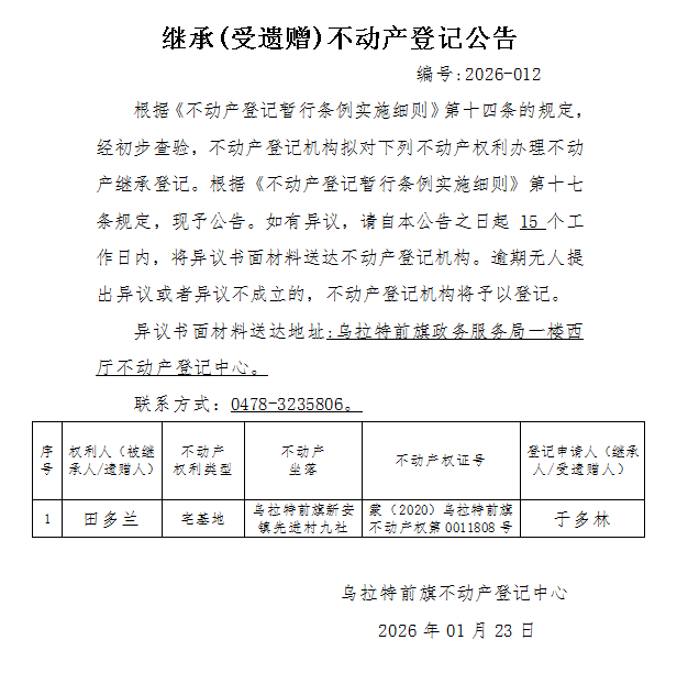 于多林、田多兰不动产权证书遗失(灭失)声明
