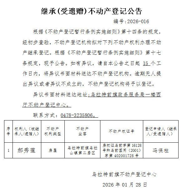 来源:乌拉特前旗不动产登记中心